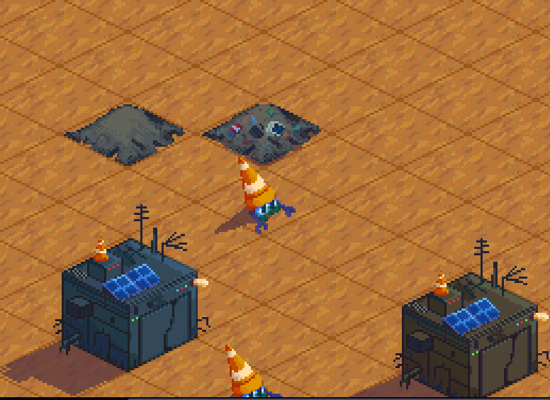 Absolutely love the concept and the gameplay loop, although I might suggest once it's further, you add something to mention the requirements for unlocking new things. Additionally, deconstructing stations seems to lag the game considerably after unlocking. (Also the cone's AI seems to break if they hafta navigate between two equally-invalid tiles that require going through a junk pile.)